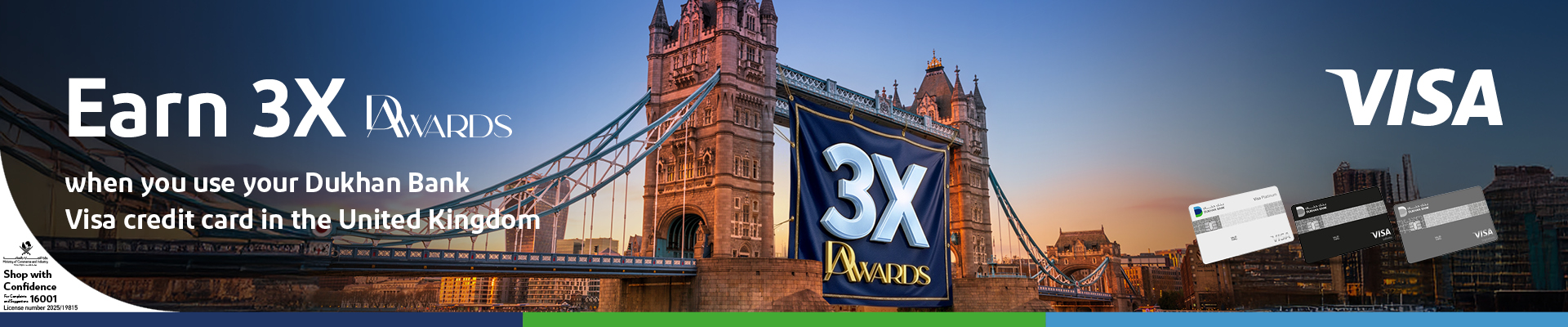 Earn additional DAwards when you use your Dukhan Bank Visa credit card for shopping, dining, and leisure in the United Kingdom.