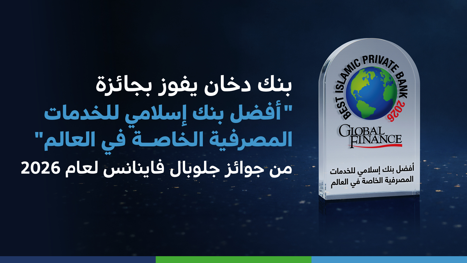 للعام الثالث على التوالي، فاز بنك دخان بجائزة "أفضل بنك إسلامي للخدمات المصرفية الخاصة في العالم لعام 2026" من مجلة جلوبال فاينانس