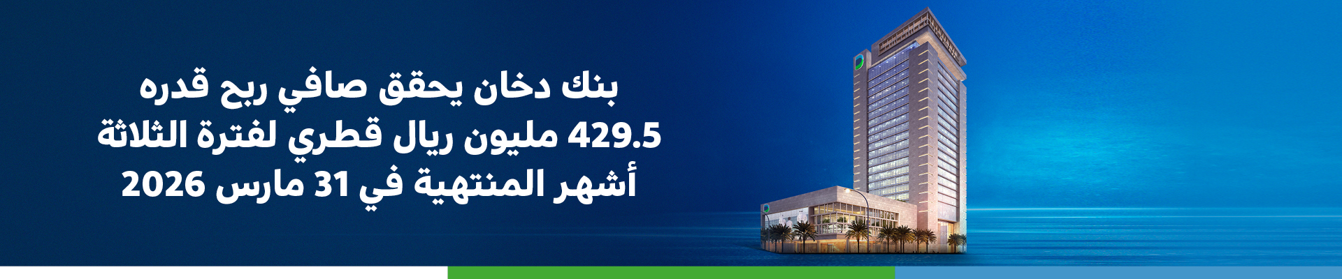 بنك دخان يحقق صافي ربح قدره 429.5 مليون ريال قطري لفترة الثلاثة أشهر المنتهية في 31 مارس 2026.