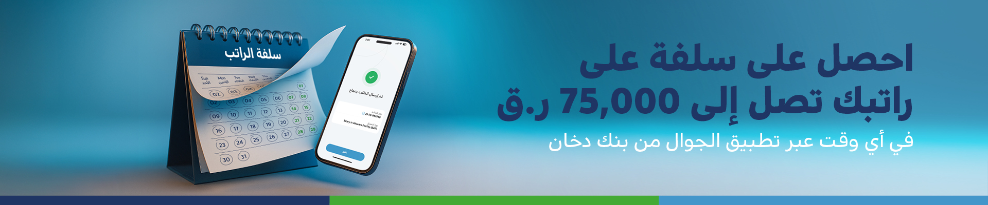 - خدمة سلفة على الراتب تصل قيمتها إلى 75,000 ريال قطري/ شهرياً