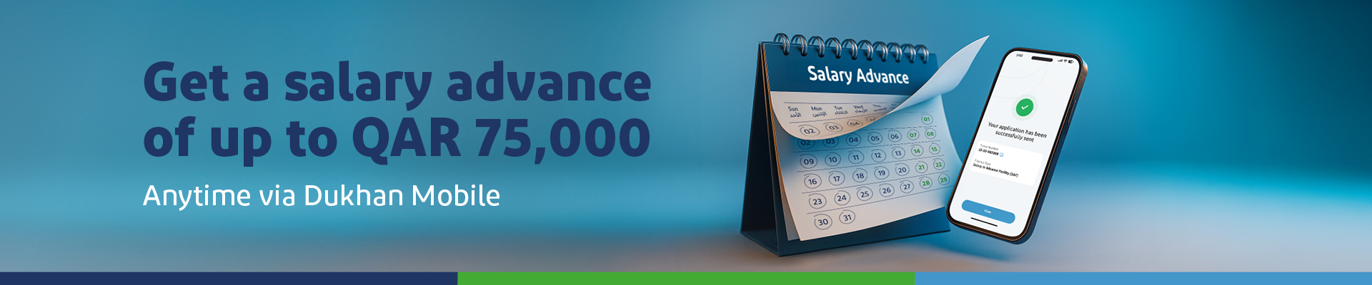 Have money when you need it the most with Dukhan Bank’s Salary Advance facility and bring forward up to QAR 75,000 of your next month’s salary, today. It’s convenient, easy and hassle free with an easy application process and simple documentation that you could take on through our call centre and our Dukhan Bank branches. An unlimited number of salary advances are on offer for customers as well, as you could get approval for up to 12 months, renewable furthermore for the same period. So the next time your month is a little more expensive than others, know that we’re here to help you by making every day your salary day.